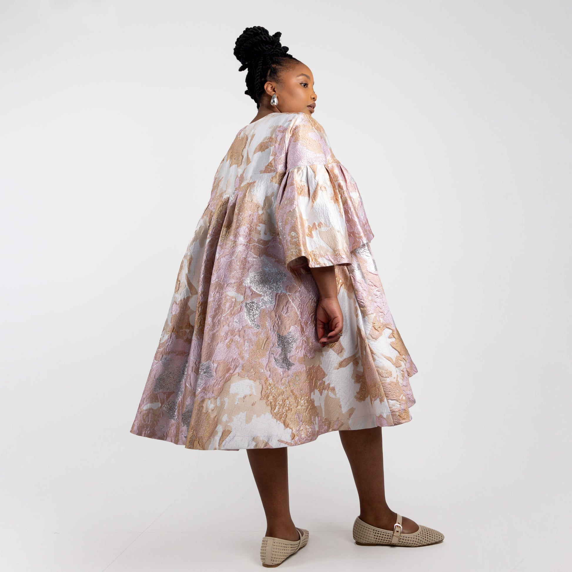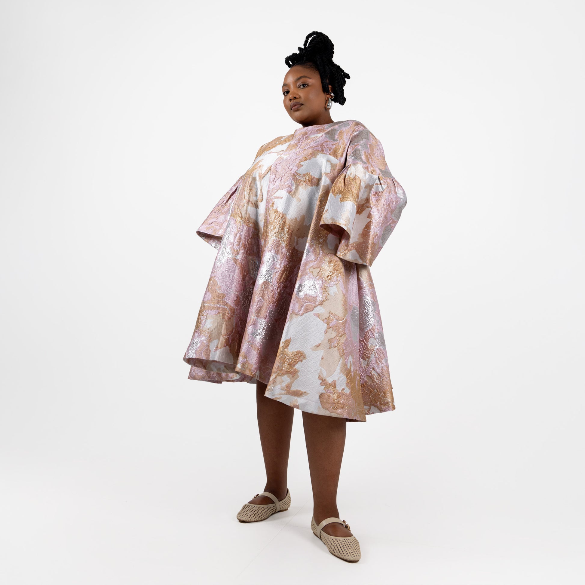 It's hard to find a cute dress for a formal function that can be worn multiple times and that doesn't feel dated. When we saw this fabric we fell in love and immediately knew which silhouette it would suit! I love this mini dress because it's SO easy to wear and the fabric and shape does all the hard work. It's glam enough to wear with flats but of course you can also wear it with heels. I love to wear mine over straight leg pants/denim when the weather is cooler. I am a full believer that life is too short for boring clothes! So please don't keep this beauty in the cupboard for only special occasions, every day is an occasion!